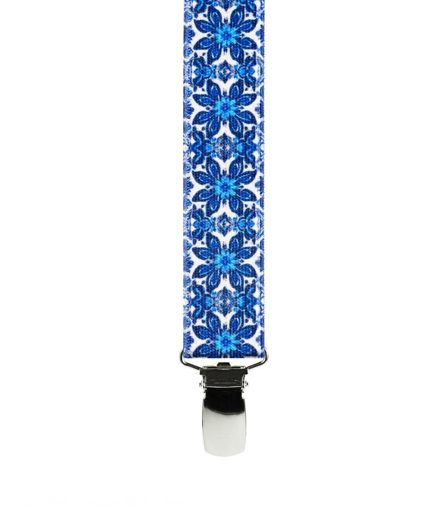 Bretelles 4 Pinces - Transfert Satiné 25mm - 120cm - Fleurs Bleues - Série Limitée